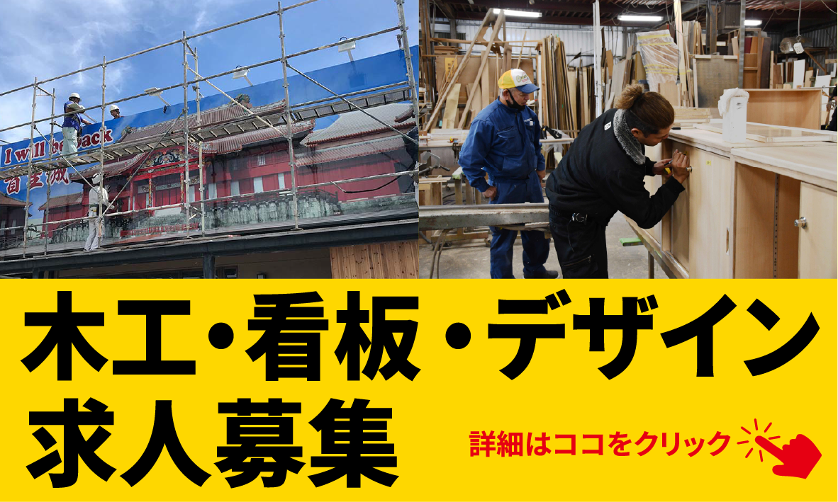 沖縄県で看板・木工・店舗製作改装・注文家具を行なっております。