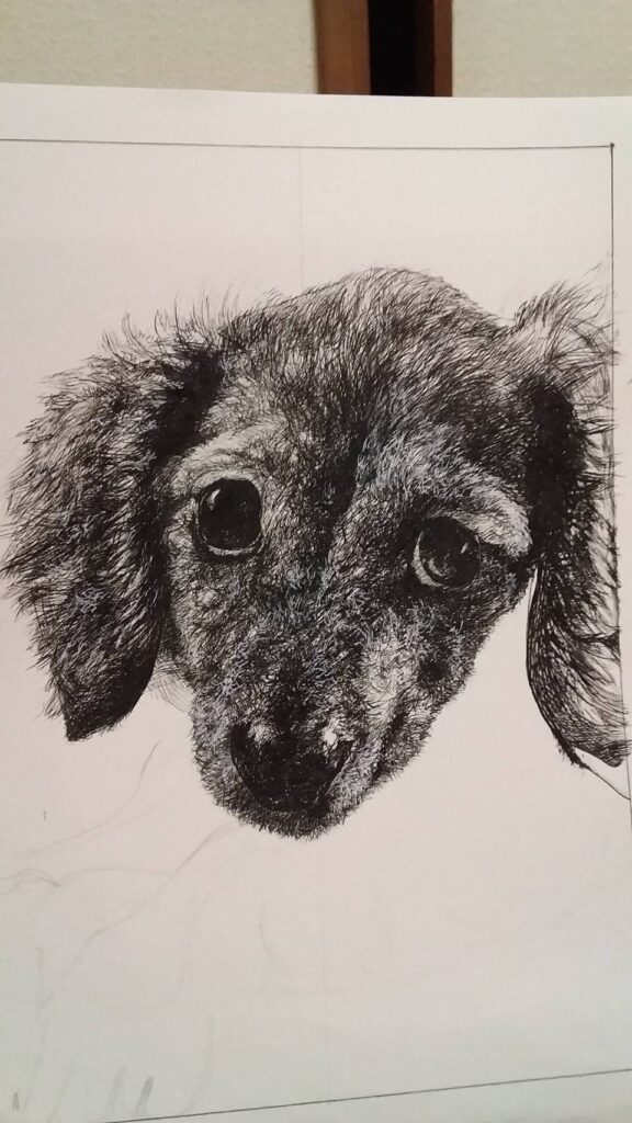 友達の飼ってる犬の絵、しかも途中の写真が、、、