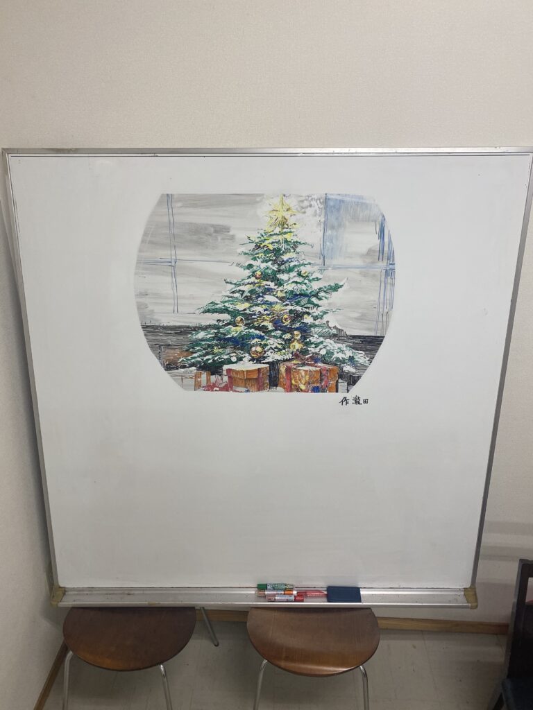 社内のホワイトボードに、営業の瀧田がホワイトボード用マーカーで描いたクリスマスツリーが登場しました。何気なく描かれた一枚ですが、事務所の空気がふっと和らいだ気がします。忙しい毎日の中で、こうしたちょっとした遊び心や季節感を大切にしてくれる姿勢は、とても嬉しいものです。思わず「いいね」と声をかけたくなる、そんなクリスマスツリーでした。仕事の合間に生まれた小さな表現が、職場に笑顔と会話を運んでくれる。社員の感性に感謝したくなる、心温まる出来事でした。