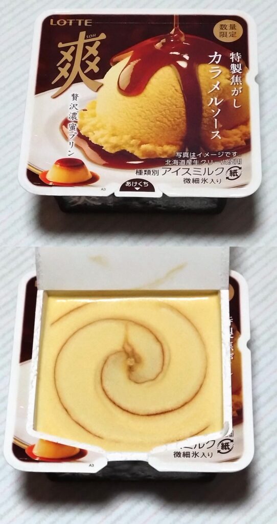 今回はこちらの商品! 「爽 贅沢濃蜜プリン」 爽らしい食感はありつつシャリシャリ感はひかえめで 焦がしカラメルのほろ苦さがあって 思わず「プリンだ!」と声がでてしまう 甘さひかえめのアイスを美味しくいただきました。